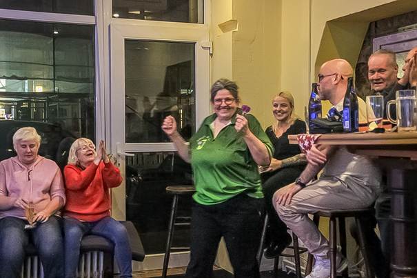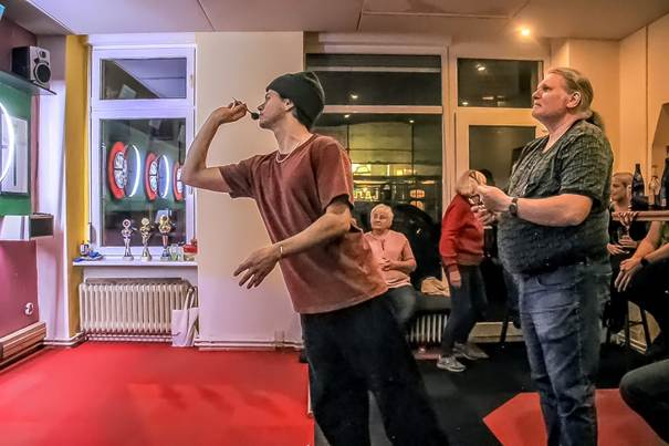 Beispielweise in den Spielen Britta gegen Julien oder Basti gegen Emanuel. Da ging trotz allem Vereinszusammenhalt ein kleines Freudenräuschen durch die Zuschauerränge, wenn der Underdog aus der Bezirksliga gegen einen Rivalen aus der Landesliga checkte.