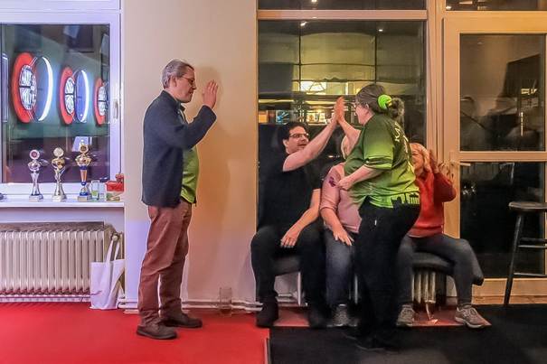 Es ging weiter mit der KO-Phase. Im Playoff setzen sich Basti, Carsten, Britta und Anne durch. Spätestens in den Vierteilfinals gab es einen spürbaren Anstieg in der Spannung.