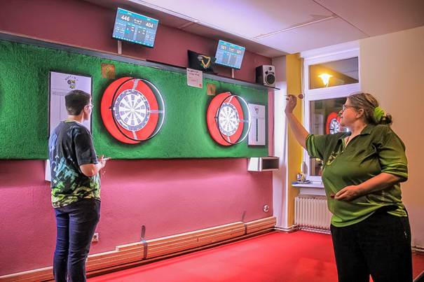 Auch wenn viel los war, behielt man dank der drei Bildschirme die Übersicht und die Zuschauenden konnten das Spielgeschehen immer gut verfolgen. Betrat man den Dartraum, war man sofort im Spiel.
