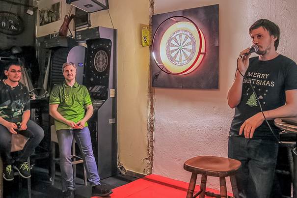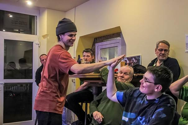 Dazu kommt schließlich unser Special Guest Klaus, der bereits im Sommer aus NRW mehrfach angereist war, um unser Sommerliga-Team Ray’s O’Blades zu unterstützen und auch zur Weihnachtsfeier nicht fehlen durfte.