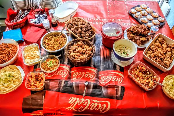 Anmerkung der Redaktion: Coca-Cola war kein offizieller Sponsor des Buffets. Getränke gab’s ganz klassisch von der Bar.